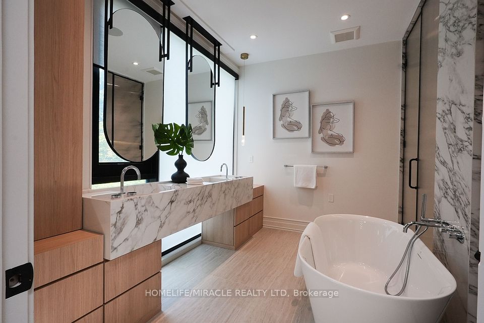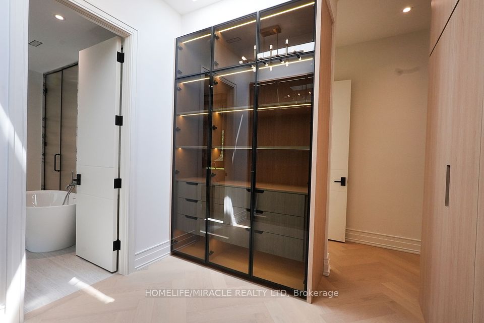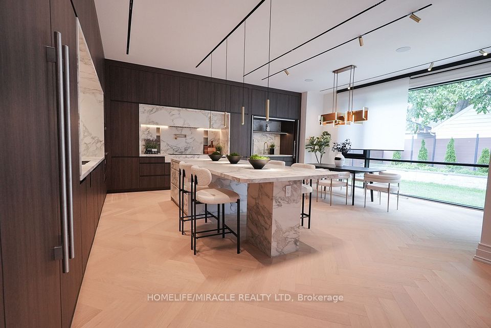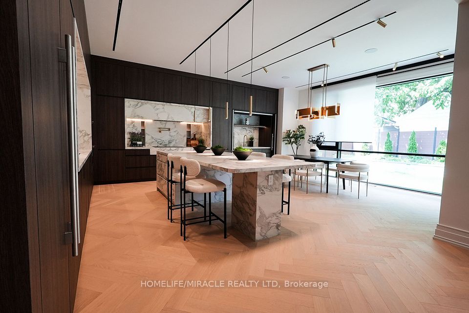 Introducing Spectacular 184 Poyntz Ave; A Bold Architectural Achievement That Seamlessly Blends Luxury and Functionality! This Exquisite Residence Welcomes You With a Stunning Grand Foyer, Leading to a Beautifully-Appointed Great Room Featuring Elegant Paneled Walls, Custom-Built Shelving, & Gas Fireplace. Floor-To-Ceiling Aluminum Sliding Windows Open to a Covered Backyard Patio, Creating the Perfect Indoor-Outdoor Flow. The Heart of the Home is the Opulent Chefs Kitchen, Boasting High-End Sub-Zero and Wolf Built-In Appliances, a Striking Center Island Wrapped in Porcelain, and Matching Wood Panels; The Ideal Space For Entertaining And Everyday Living! The Main Floor Further Stuns with An Office, With Soaring Double-Height Ceilings (Conveniently Located Near the Entrance) That Offers an Inspiring Workspace, & Mudroom, Complete with Ample Closet Space and Direct Access to the Garage. Continuing On Upstairs, An Impressive Primary Awaits: Beautifully-Designed With Fireplace, Incredible Walk-In Closet, & Remarkable 6 Pc Ensuite! 3 Additional Bedrooms All Include Their Own Ensuites. The Bright, Fully-Finished Basement Includes a Large Recreation Room, Complete with a Wet Bar and Direct Walkout Access to Patio, Offering Even More Space For Relaxation or Entertainment! No Detail has been Overlooked, From the Opulent Contemporary Finishes Throughout, to Features such as a Snow-Melting Driveway, Herringbone Flooring, Control4, and Extensive Paneling. Split-Level Bedroom Design Ensures Maximum Privacy, with Primary & Secondary Bedrooms Enjoying their Own Private Walk-out Balconies. Located in the Heart of North York, Just Minutes from Yonge St. and Sheppard Ave., This Home Truly Embodies The Luxury and Comfort of Modern Design, with an Excellent Location to Match.
