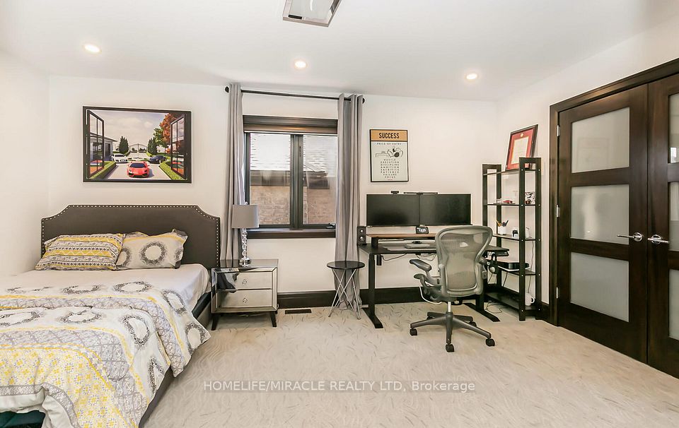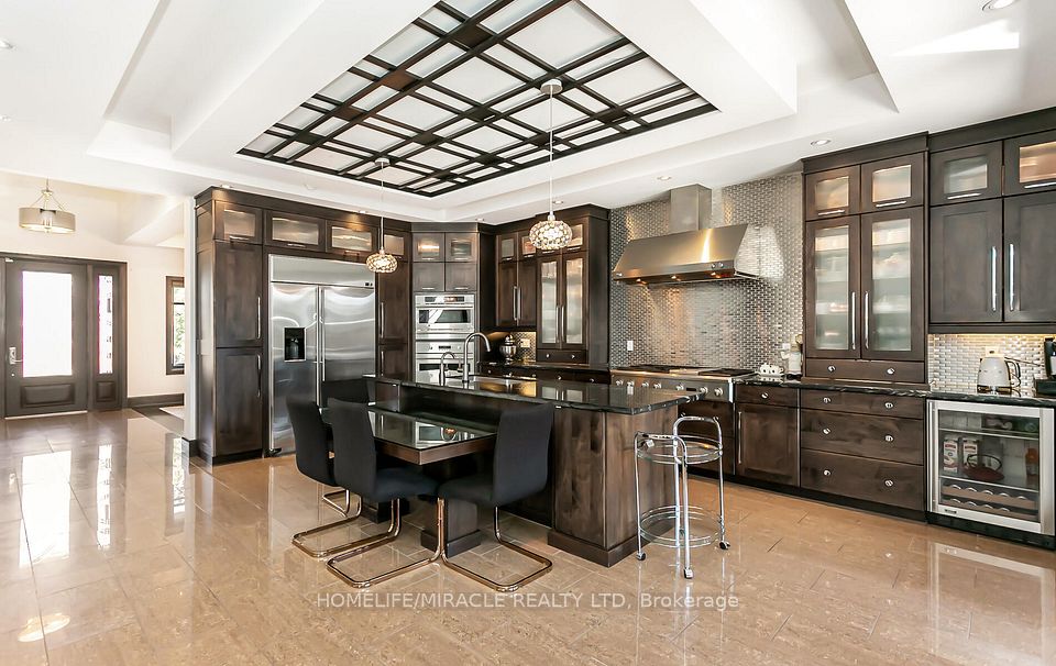 Welcome to 24 Jacob Gingrich Drive!! A Luxury Masterpiece in Deer Ridge Estates. Experience refined living in this executive, custom built detached home nestled in the prestigious neighborhood. Offering over 5,600 sq. ft. of impeccably finished living space, this residence seamlessly blends modern elegance with exceptional craftsmanship. Step inside to discover an award winning gourmet kitchen, thoughtfully designed with premium appliances, sleek granite countertops, a built in breakfast nook, and soaring 10-foot coffered ceilings. Entertain effortlessly in the separate formal living and dining rooms, or unwind in the breath taking family room highlighted by dramatic 22'ft high ceilings. Luxury is evident in every detail from in floor heating and custom glass insert doors to the stunning glass railed wooden staircase leading to a versatile loft space. The primary suite is a true private retreat, featuring a covered porch, direct backyard access through sliding doors, and a spa inspired ensuite complete with a glass steam sauna, rainfall shower with body jets, and a custom walk in closet. The fully finished basement is designed for ultimate entertaining, boasting 9'ft ceilings, large lookout windows, and a built in home theatre with surround sound. Enjoy a wet bar, wine cellar, home gym, and game room. A second master suite with ensuite offers excellent in-law suite potential. Step outside into your professionally landscaped backyard oasis, featuring a covered patio, built in Napoleon BBQ, luxury spa hot tub, and a full sprinkler system for effortless maintenance. Interlocked driveway with parking for up to 6 vehicles(no sidewalk)Oversized garage with a Tesla charger. Prime location just minutes to Highway 401, shopping, top rated schools, and three premier golf clubs. This is a rare opportunity to own a truly exceptional home in one of the area's most sought after communities. Your dream home awaits!!
